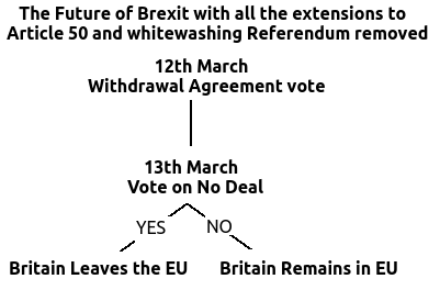 If they reject No Deal they are banning Brexit because the EU will simply wait and see what happens. The EU will entertain meetings and mock negotiations, providing a small sense of movement. The EU know that having banned No Deal once then the MPs will simply continue to ban it because nothing will have changed from 13th March.