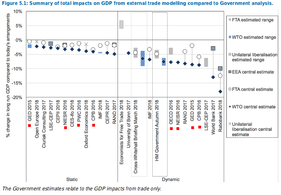 The graph gives the impression that the Treasury figures are widely supported but those predictions marked with a red square were prepared to affect the Referendum in 2016 and are largely based on an imaginary collapse of the economy due to post-referendum uncertainty in 2016-2018. The inclusion of these largely discredited reports means that the Treasury predictions are not so widely supported. The discredited inclusions also show what the Treasury was trying to do: create Project Fear Mk2.