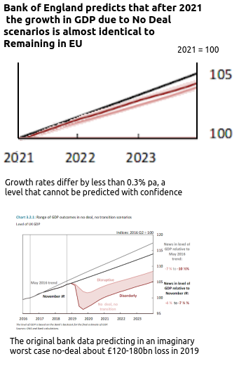 Remain MPs always prefix “No Deal” with words like “disastrous” but the Treasury and Bank of England predictions for no-deal were brazenly fixed by including in the small print massive reductions in UK population growth after No Deal and using a baseline for predictions from 2016, effectively lumping global downturns in with Brexit. The Bank also stated openly that its worst case no-deal predictions were for the absolutely worst case imaginable with no measures of any sort being taken to ameliorate any potential dislocations. Remain MPs have been using these imaginary figures as a true account of the results of No Deal. The truth about No Deal is that it will be slightly painful but nowhere near as bad as the 2008 bank collapse and the country will recover within a year or so with the Referendum result respected.