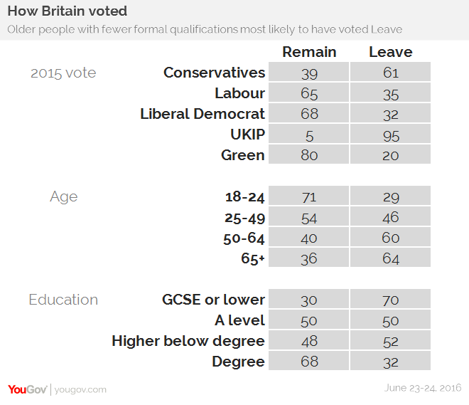 The first lesson to be learnt from the EU Referendum is that only the Conservative Party contained MPs who represented their constituents.