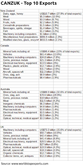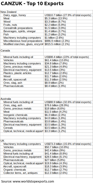 This compares with $20.5 trillion for the USA and $15 trillion for the EU (without the UK). The scope for growth is far higher than that of the EU and even higher than the USA given the right policies. CANZUK would be one of the big five in global negotiating strength (China, USA, EU, CANZUK, India) and would certainly be able to hold its own in the WTO etc.