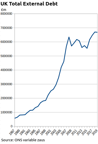 The total UK external debt (borrowing from overseas) is over £6 trillion: