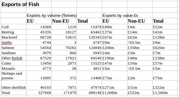 The “UK” exports large amounts of fish that it subsequently imports (see tables 1 and 2 below). The strange export and re-import figures for UK fish are explained by the foreign ownership of UK fishing quotas. When these fish are landed abroad they are called “exports” and when they are sold to the UK they are imports. The UK imports its own fish.