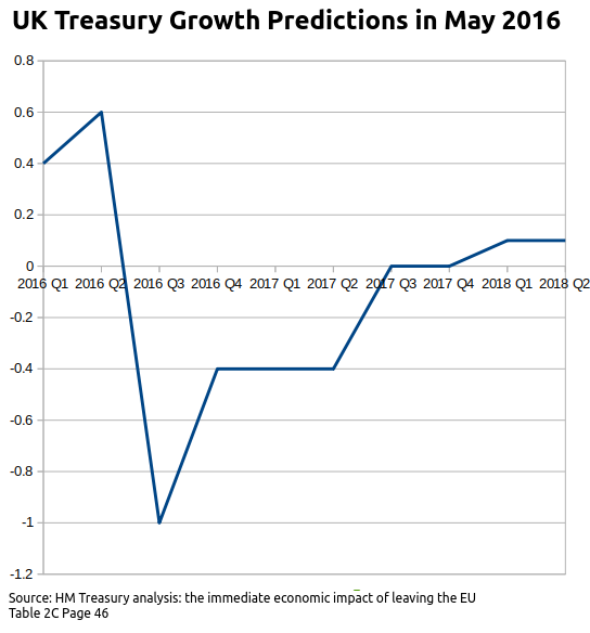 OK, the predictions described above are what is known as Project Fear Mk1. In Project Fear Mk1 the Treasury and its International pals attempted to terrify the population into voting Remain in the EU Referendum. I am sure they believed that their bluff would never be called and the UK would vote Remain. Once they had lost the Referendum they changed their predictions entirely within 6 months so that they would not be a laughing stock.