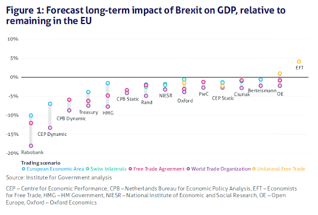 That no economist can predict GDP for 15 years into the future is not allowed to spoil a good story and confounding factors such as changes in population growth are just glossed over. This is the imaginary picture that is being used to condemn a No Deal brexit: