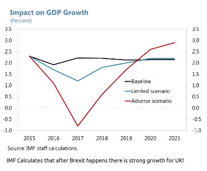 Notice that in the “Adverse Scenario” – the No Deal Scenario – the IMF calculated good growth after Brexit actually happens.