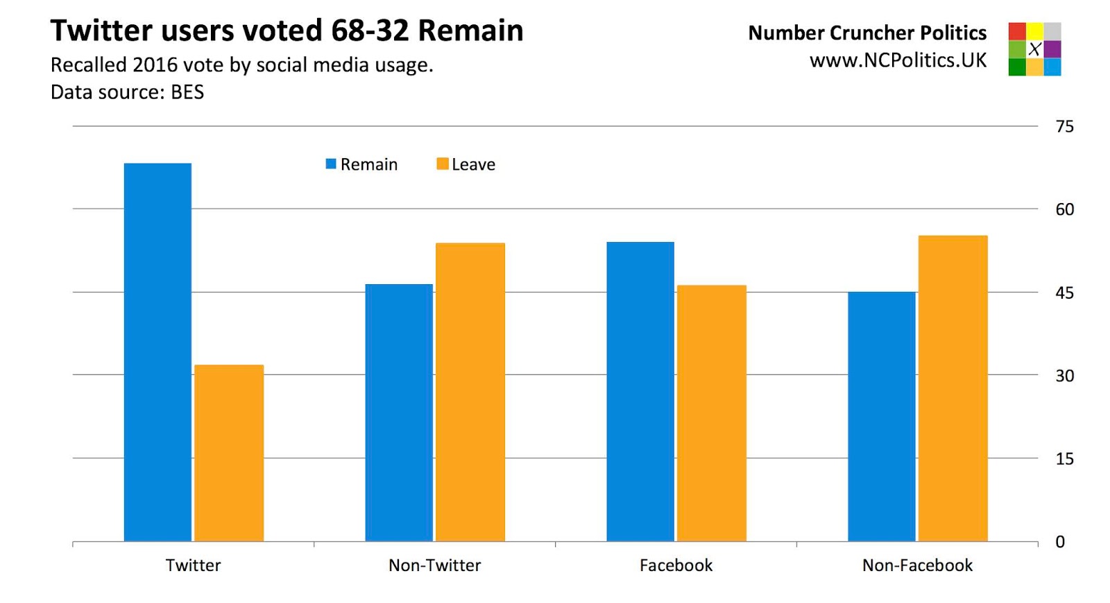 As an example, most Twitter users in the UK support the EU (Remain):