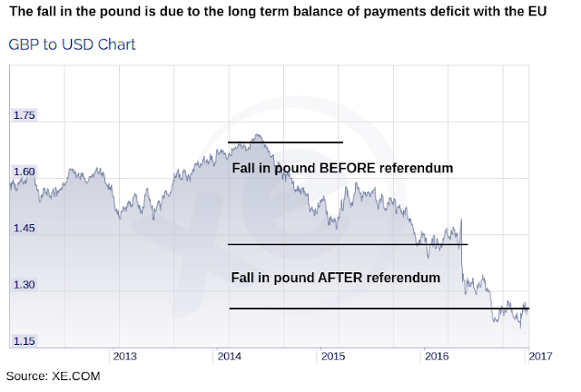 The Bank of England confirmed that the Balance of Payments would cause the pound to fall: “A persistent current account deficit could lead to a sudden adjustment in capital flows or depreciation of the exchange rate, with adverse consequences for UK financial stability.” Bank of England