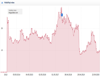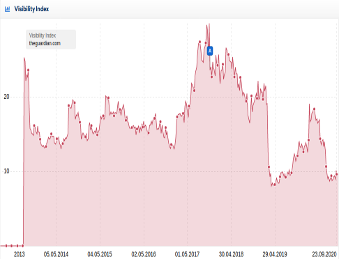 Breitbart is the only site I have seen with deeply suspicious visibility figures. The Guardian seems little affected (theguardian.com is a recent internet site, it was guardian.co.uk):