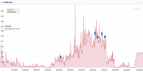 The US website Breitbart, which by UK standards is fairly right wing, is an interesting case. It was savagely cut from visibility in July 2017 and has recovered to an apparently artificially imposed ceiling in March this year after complaints.