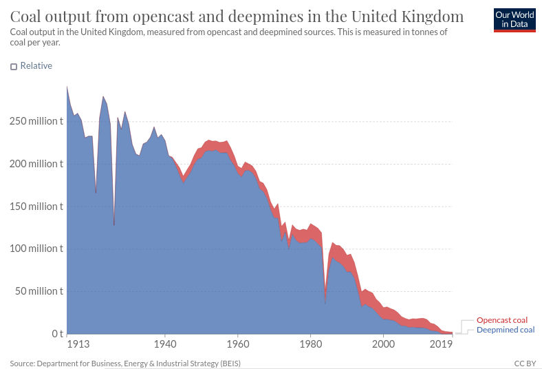 Did Thatcher devastate British industry? Coal had been in decline in the UK for decades before 1979.