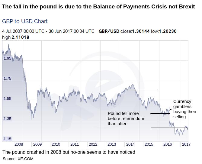 The Pound fell 20 cents between 2014 and the referendum and 10 cents since the referendum. The rise and fall around the referendum was short term speculation, the long term fall is a result of the UK-EU balance of payments crisis.