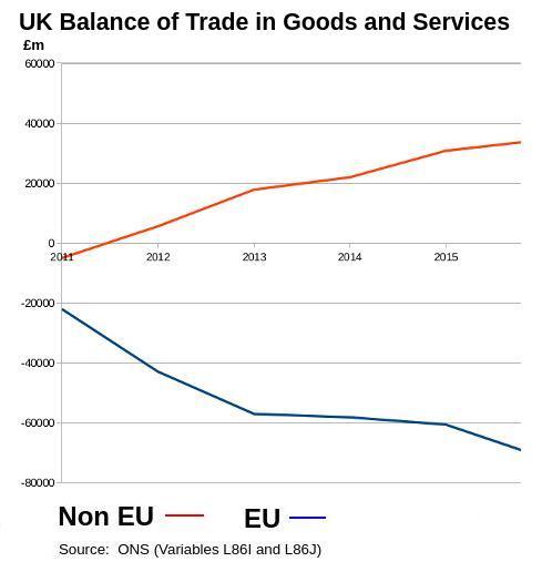 The reason that the trade figures with the Eurozone are so bad is that Eurozone companies operate without restraint in the UK. The UK has no deal with the EU to prevent the Eurozone from wholly replacing British goods and services produced in Britain with Eurozone produced goods and services. Eurozone companies can buy up British competitors and if they desire source all their stock from the Eurozone.