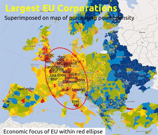 There are only three UK Corporations, Tesco, HSBC, BP, in the top 20 EU Corporations. The EU Corporations are sucking the life out of the UK economy, reducing it to a low productivity region of the EU.