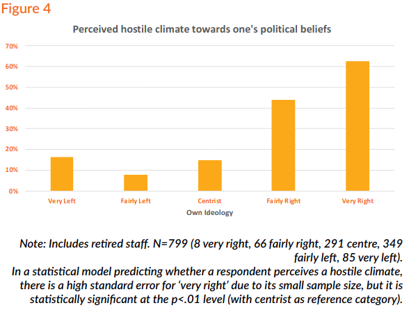 The findings of this report confirm those of many previous studies. There are no studies showing that UK universities have been taken over by the “Right”. This new report is useful because it is wide ranging and covers areas from the dispensation of Grants to social discrimination.