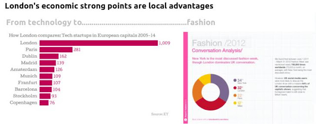 It is obvious to someone who looks over a busy harbour or across ripening cornfields that the economy is linked to the land. But locality does not just affect agricultural land. It is less obvious that the British rules and regulations governing London markets underpin these markets, that the mass of theatres and the fluency of the English greatly assist the UK media etc. The urban population can easily imagine that Paris or Berlin are just cities like London but from tech startups to fashion there are huge differences due to local and national influences on London: